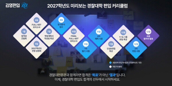 이런 가운데 메가스터디교육 대학편입 대표 브랜드 ㈜아이비김영 ‘김영편입’이 2027학년도 경찰대 편입에 대비한 경찰대전문관 2월 과정을 오는 2월 2일 개강한다고 밝혔다.