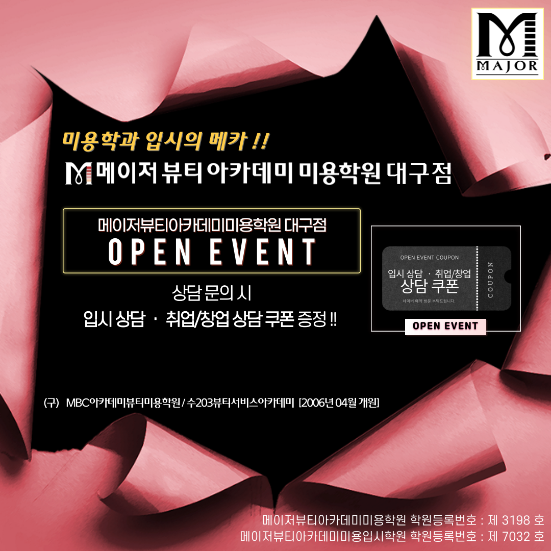 2026년 2월, 브랜드 변경과 함께 새롭게 출발하는 메이저뷰티아카데미 대구지점은 입시 성과로 증명된 안양본점의 시스템과, 전국 최고 수준의 수상 실적과 현장 경험을 갖춘 대구지점의 경쟁력을 결합해 대구·경북 미용 입시 및 취·창업 교육의 새로운 기준을 제시할 것으로 기대를 모으고 있다.