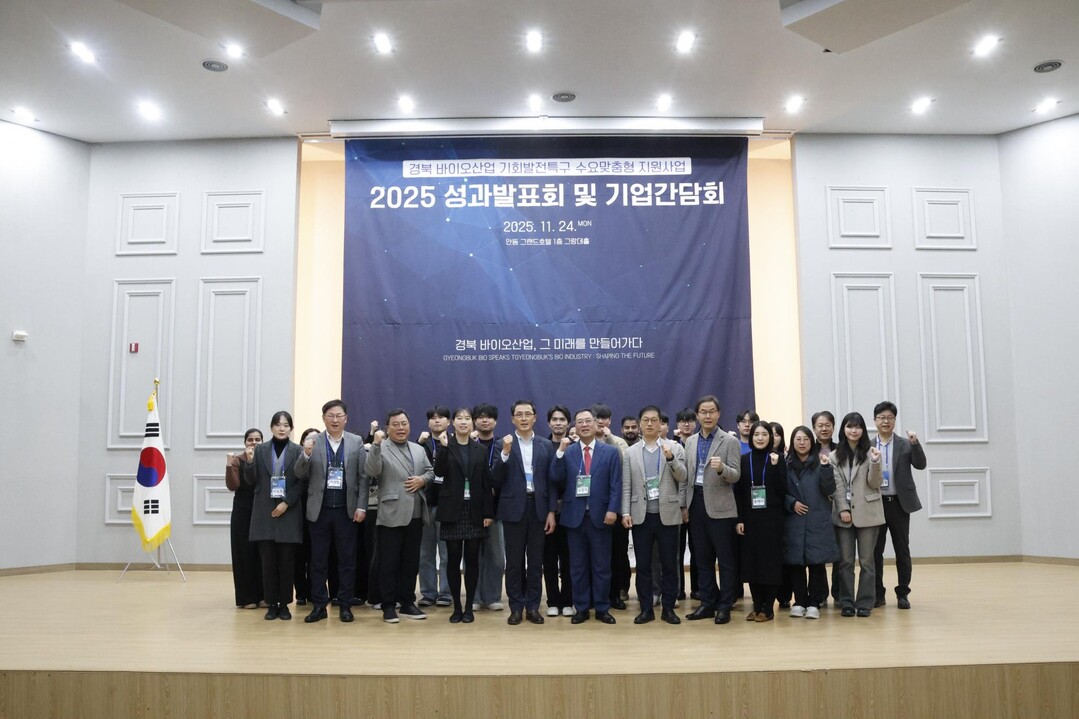 국립경국대학교 산학협력단은 24일 오전 안동 그랜드호텔에서‘2025년도 경북 바이오산업 기회발전특구 수요맞춤형 지원사업 성과발표회 및 기업간담회’를 열고, 올해 추진된 바이오산업 재직자 및 신규인력양성 지원사업의 주요 성과를 공개했다.