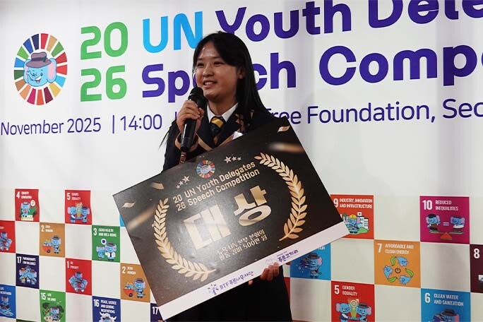 황 양에게는 ▲2026년 UN 청소년 대표단 공식 자격 ▲뉴욕 UN 본부 파견 및 경비 50%(500만 원 상당) 지원 ▲푸른나무재단 이사장 표창이 주어진다.