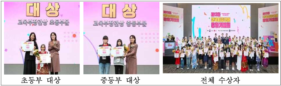 이 밖에도 교육부 장관상, 국가평생교육진흥원장상, 한국외국어대학교총장상 등 다양한 상이 수여됐다. 지도교사에게는 LG에서 특별상품이 전달됐다