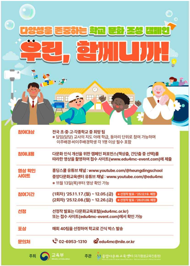 참여는 다문화교육포털(www.edu4mc.or.kr) 또는 캠페인 사이트(edu4mc-event.com)에서 가능하다
