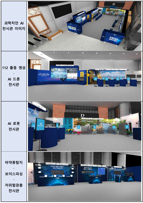 ‘과학치안 인공지능 전시관’은 경찰의 날 행사 종료 후인 10월 21일(화)부터 24일(금)까지 오전 11시부터 오후 5시까지 일반 시민에게 공개된다.