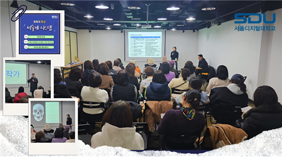 서울디지털대학교(총장직무대행 이영수) 회화과와 조형예술전공은 최근 겨울방학을 맞아 강서캠퍼스 전시장에서 두 차례의 오프라인 특강을 진행하며 재학생들에게 미술 현장의 생생한 정보를 제공했다.