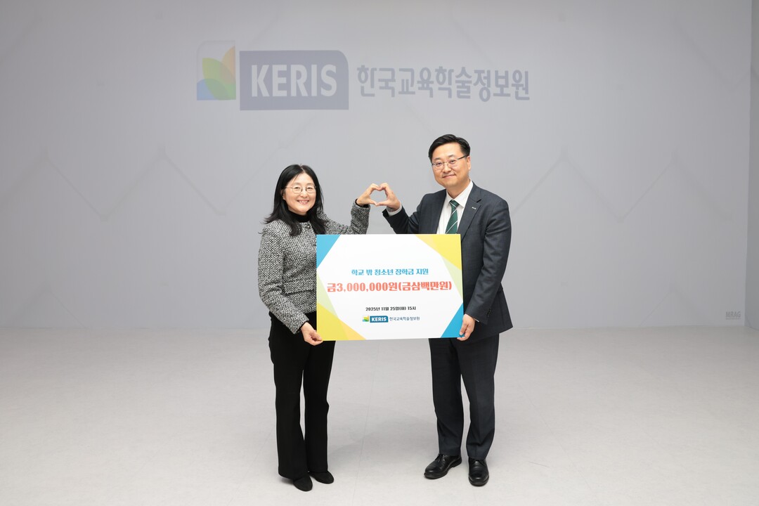 [피앤피뉴스=마성배 기자] 한국교육학술정보원(케리스)이 학업을 이어가거나 자립을 준비하는 학교 밖 청소년에게 실질적인 지원을 제공하기 위해 올해도 장학금을 전달했다.