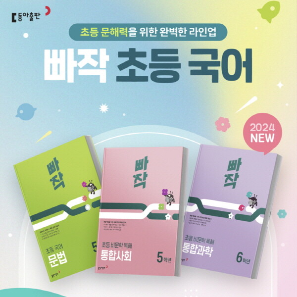 동아출판 관계자는 “이번 신간은 초등 과정부터 2028학년도 수능 개편 방향에 맞게 학습할 수 있도록 개발했다”면서, “신간을 활용해 초등 국어 학습의 올바른 학습 방법을 제시하고, 공부 습관까지 이어질 수 있도록 겨울방학 학습단, 빠작윈터스쿨 등 다양한 이벤트를 마련한 만큼 많은 참여를 바란다”고 전했다.