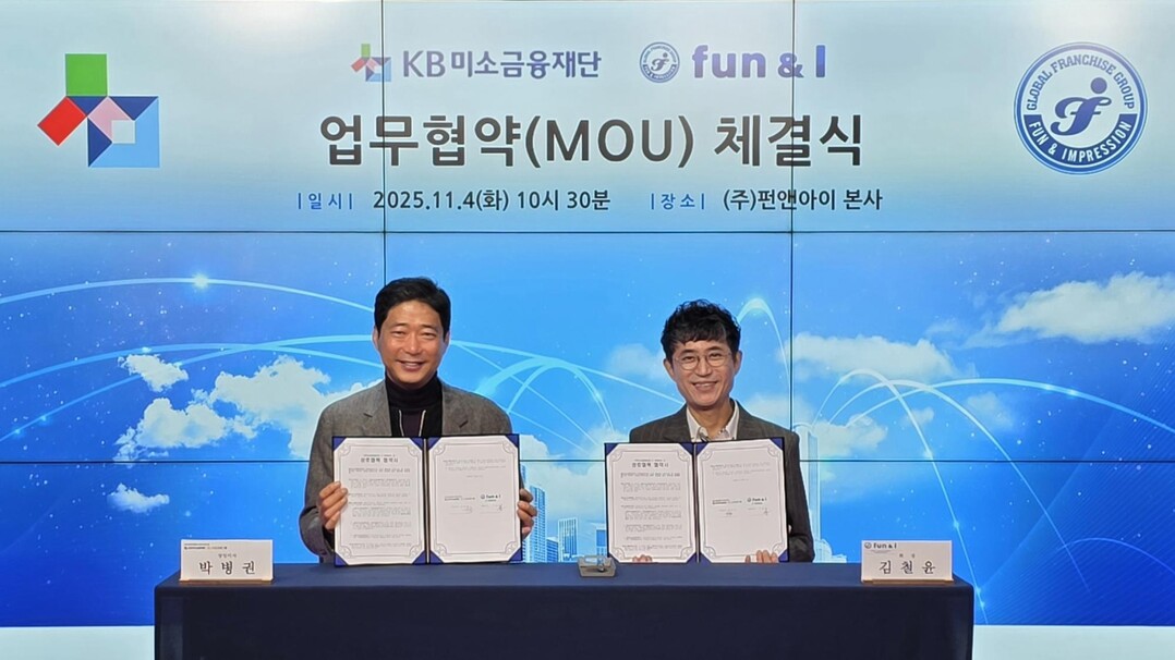 ㈜펀앤아이(대표 김철윤)는 4일 KB국민은행·KB미소금융재단과 소상공인과 예비창업자의 안정적인 창업 환경 조성 및 금융 부담 완화를 위한 업무협약(MOU)을 체결했다고 밝혔다.