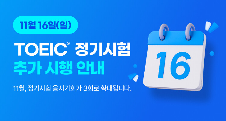 11월 16일(일) TOEIC 정기시험 추가 시행...총 3차례 응시 기회 제공