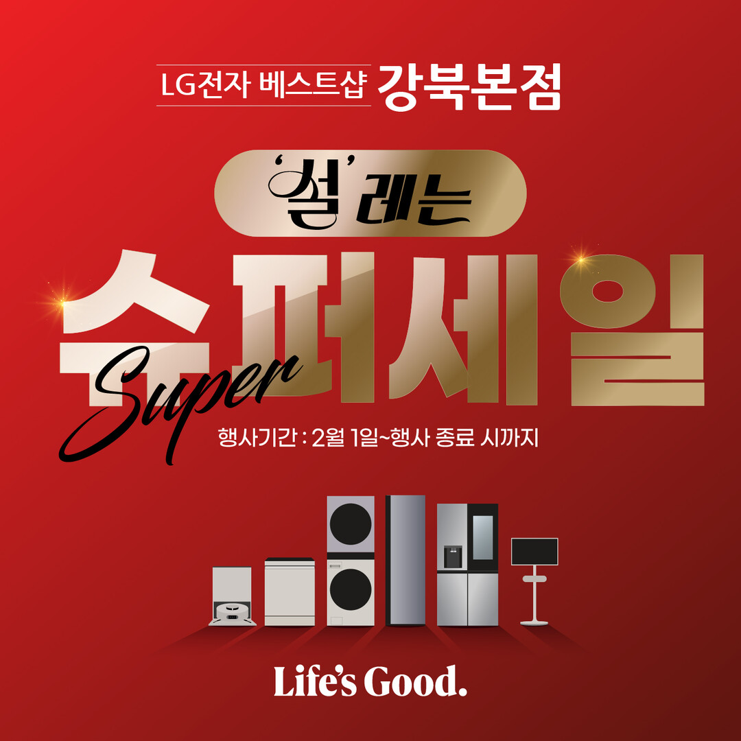 LG전자 베스트샵 강북본점에서는 '설'레는 슈퍼세일 가전행사를 2월 1일부터 행사 종료시까지 진행한다.