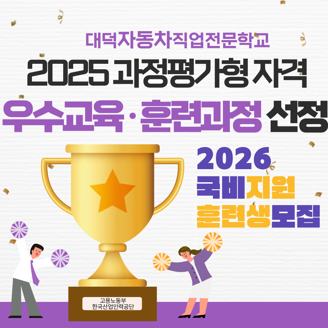 대전 자동차정비 전문 교육기관인 대덕자동차직업전문학교가 2026년 2월 개강을 앞두고 ‘자동차정비산업기사 과정평가형 국비지원 교육 과정’ 훈련생을 모집한다. 모집 기간은 2026년 2월 19일부터 11월 18일까지다.