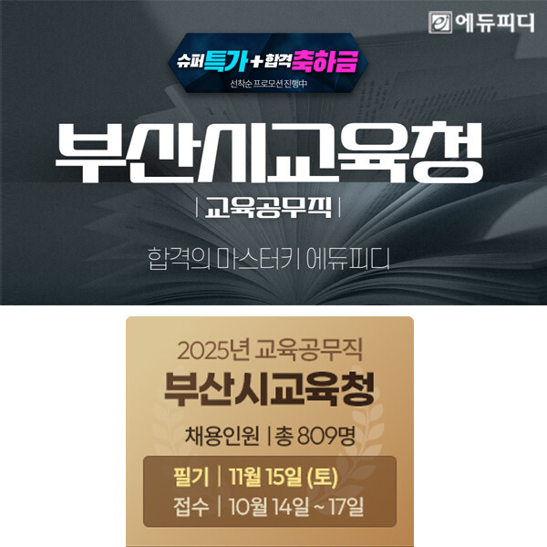 종합교육기업 에듀피디가 11월 15일(토) 시행되는 하반기 부산시교육청 공무직 공개채용 시험에 맞춰 소양평가 및 면접시험에 대비할 수 있는 ‘합격패키지’ 강좌를 오픈하고 수강생을 모집한다고 밝혔다.