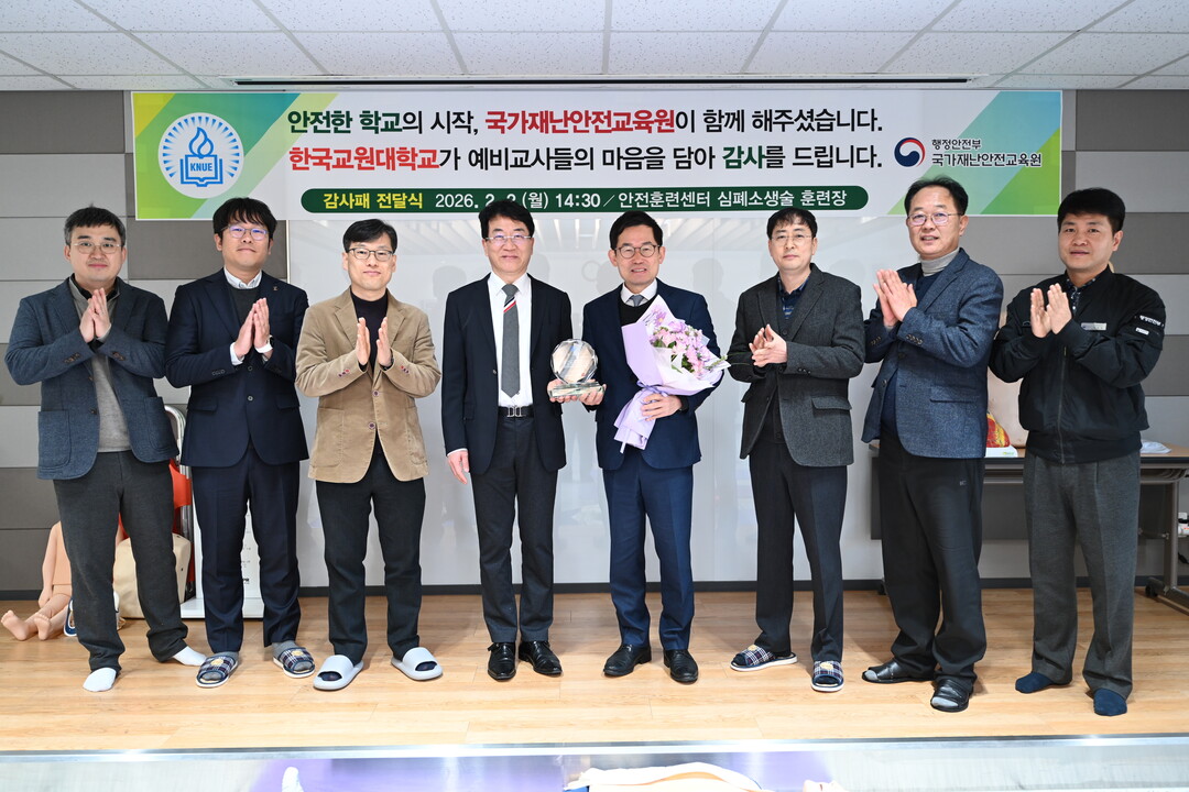 행정안전부 산하 국가재난안전교육원은 2일 한국교원대학교로부터 재난안전 교육 운영 성과를 인정받아 감사패를 수여받았다고 밝혔다.
