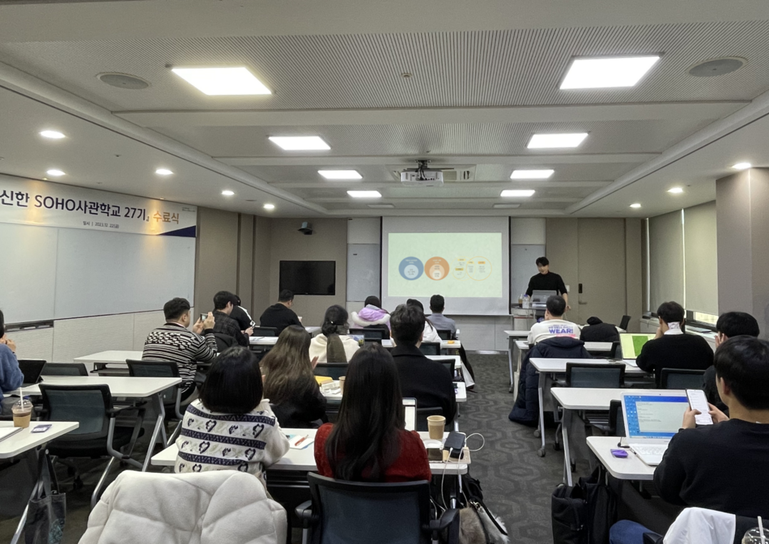 이번 ‘신한소호사관학교 27기’ 과정은 외식업·서비스업 등 다양한 업종의 자영업자 30여 명을 대상으로 ▲사업 안정성을 높이기 위한 재무 구조 설계 ▲소상공인을 위한 보험 활용 전략 ▲정부 및 금융권 지원 제도 이해 등을 주제로 약 8주간 진행됐다.