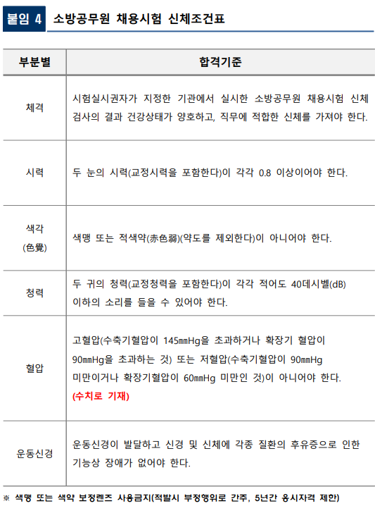 4. 소방공무원 채용시험 신체조건표 1부. 끝