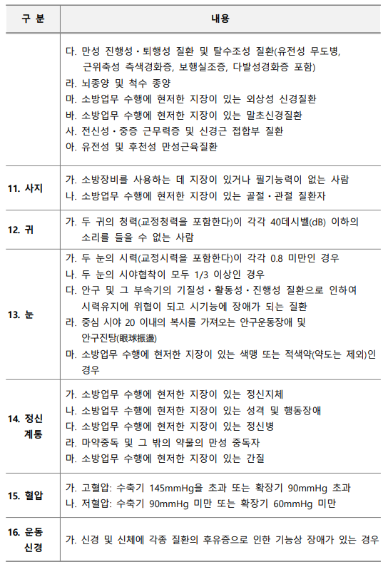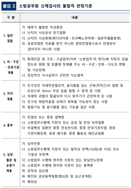 3. 소방공무원 신체검사의 불합격 판정기준 1부.