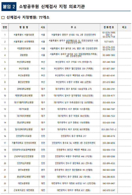 2) 검사방법: 소방청장이 지정한 의료기관(붙임2)에서 검사