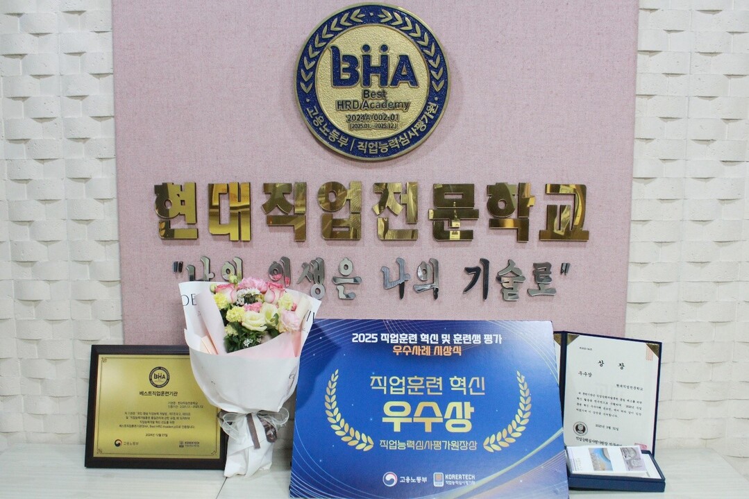 대전 현대직업전문학교(이사장 유성식)가 한국기술교육대학교 직업능력심사평가원과 고용노동부가 공동 주최한 ‘2025년도 직업훈련 혁신·훈련생 평가 우수사례 공모전 시상식’에서 직업훈련 혁신 우수상을 수상했다.
