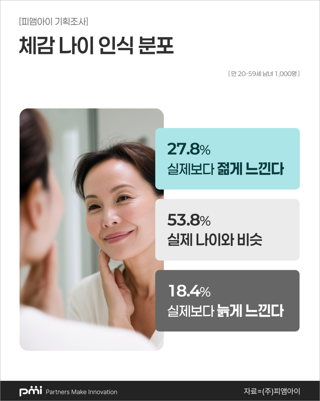 [피앤피뉴스=마성배 기자] 국내 20~50대 3명 중 1명은 스스로를 실제 나이보다 젊게 느낀다는 조사 결과가 나왔다.