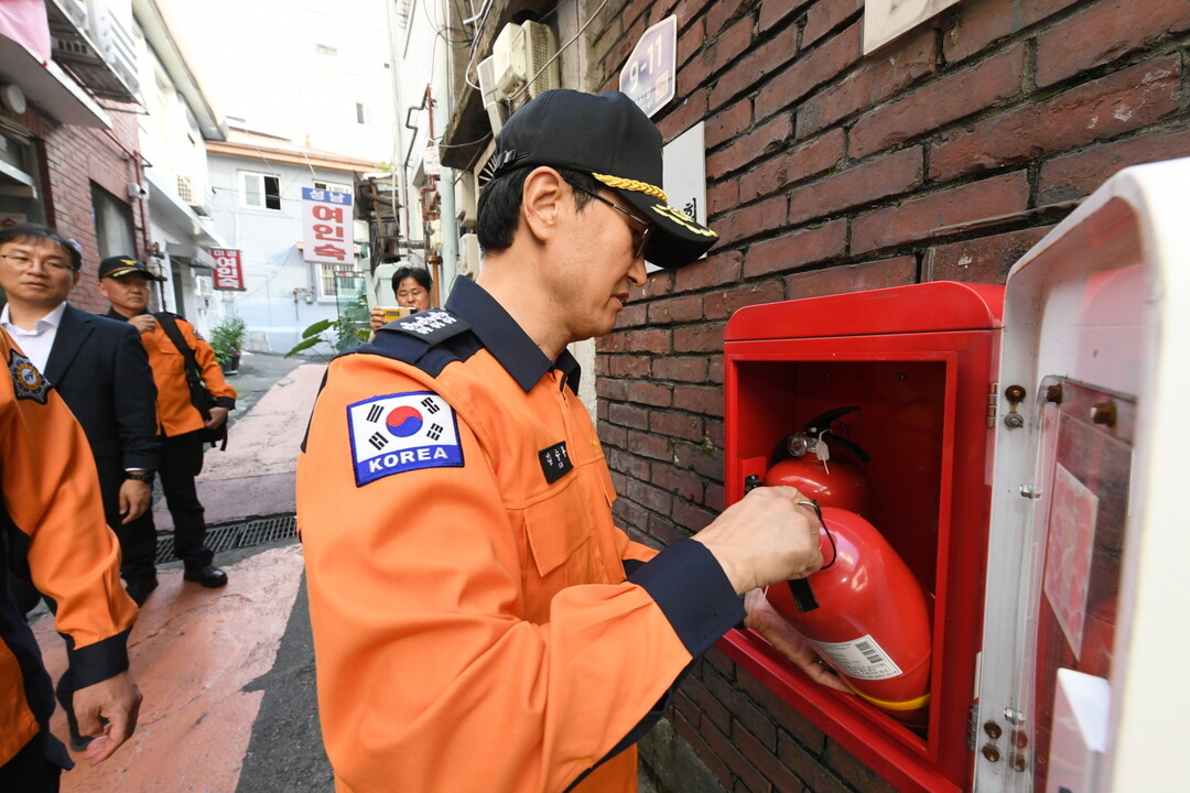 | ▲지난해 10월 2일 소방청장 직무대행이 추석연휴를 대비해 서울 동자동 쪽방촌에서 화재 안전점검을 하고 있다. |