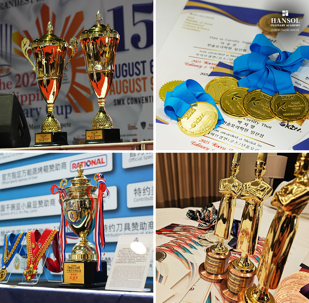 지난 2025년, 한솔요리아카데미는 태국·필리핀·상하이 등 해외 3개국 국제요리대회에서 총 128개의 메달을 획득하며 의미 있는 성과를 거두었다. 특히 태국 국제요리대회에서는 챔피언 트로피 3개, 금메달 8개를 포함해 총 70개의 메달을 수상하며 국제무대에서 경쟁력을 입증했다. 또한 2011년부터 2025년까지 전 지점 기준 국내외 요리대회에서 총 3,764개의 메달을 기록하며 지속적인 성과를 이어오고 있다.
