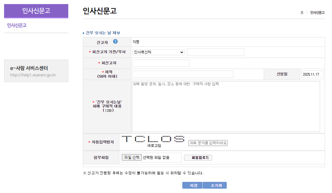 인사혁신처가 전자인사관리시스템(e-사람)에 익명 신고센터를 설치하고 21일부터 중앙행정기관 공무원을 대상으로 피해 접수를 시작한 것이다.