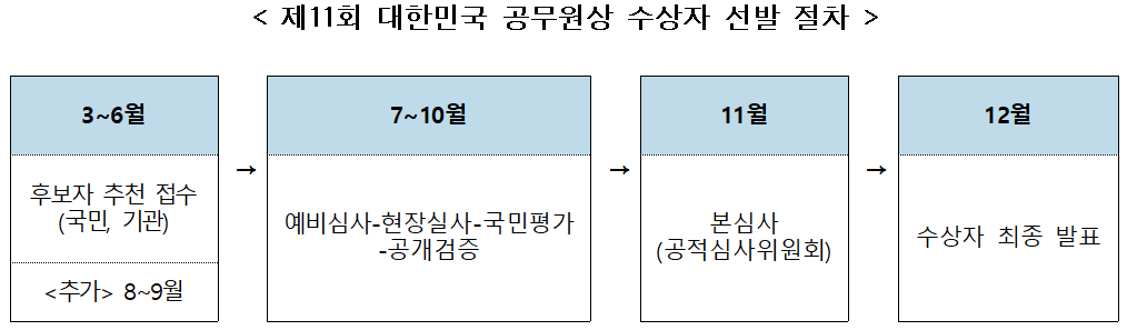 최동석 인사혁신처장은 “국민을 위해 헌신하고 책임감과 창의적인 자세로 묵묵히 자신의 역할을 해온 수상자들에게 깊은 감사와 축하의 인사를 전한다”며 “앞으로도 국민에게 충직하고 유능한 공무원을 적극 발굴해 공직자의 자긍심을 높이고 활력 있는 공직사회를 만들어 가겠다”고 밝혔다.