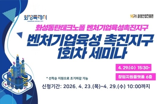 컨설팅 전문 기업 포벤처스가 화성동탄테크노폴 벤처기업육성촉진지구 내 기업을 대상으로 화성동탄2인큐베이팅센터 6층에 위치한 창업지원플랫폼에서 오는 4월 29일 ‘벤처기업육성 촉진지구 1회차 세미나’를 진행한다.