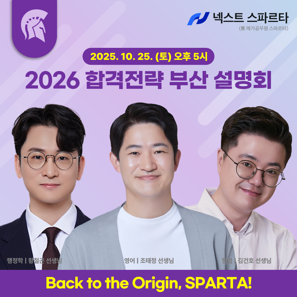 해당 설명회는 부산 지역 수험생을 대상으로 진행되며, 넥스트공무원의 대표 강사인 영어 조태정, 행정학 황철곤, 헌법 김건호 강사를 초청해 과목별 학습전략과 2026 공무원 시험 대비 방향을 직접 제시할 예정이다.