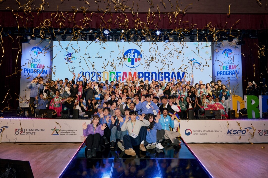 ▲2일 평창에서 열린 ‘2026 드림프로그램’ 폐회식에서 참가자들이 10일간의 일정을 성공적으로 마치고 기념사진을 촬영하고 있다.