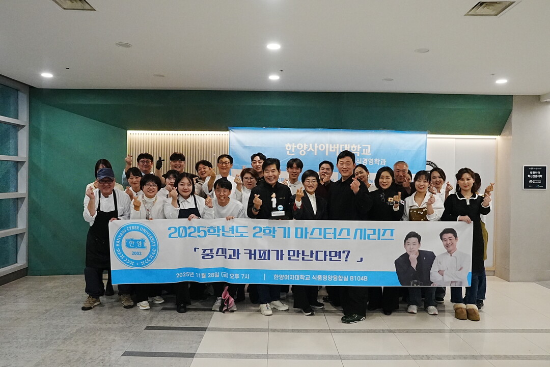 한양사이버대학교(총장 이기정) 호텔외식경영학과는 2025년 11월 28일, 이연복 교수와 월드 라떼아트 챔피언 엄폴(엄성진) 바리스타와 함께 마스터스 시리즈 콜라보 실습특강을 개최했다. 이번 이벤트는 “중식과 커피가 만난다면?”이라는 주제로, 학생들이 외식산업과 식음료 서비스 산업의 융합을 현장에서 직접 경험하는 실습형 교육으로 구성했다.