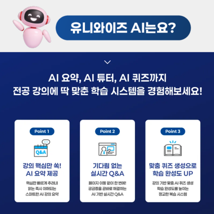 대학인강 유니와이즈, 전공 인강에 AI 탑재…요약·질문·퀴즈 기능 지원