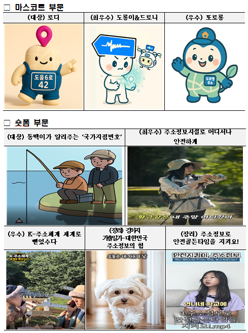 마스코트 부문에서는 ‘로디’가 대상을 차지했으며, 숏폼 부문에서는 ‘동백이가 알려주는 국가지점번호’가 대상을 받았다.