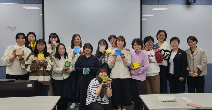 | ▲사진=숭실사이버대 아동심리치료학과 ‘긍적심리학 기반 지원강화 아트 워크샵’ 특강 기념촬영, 숭실사이버대 제공 |
