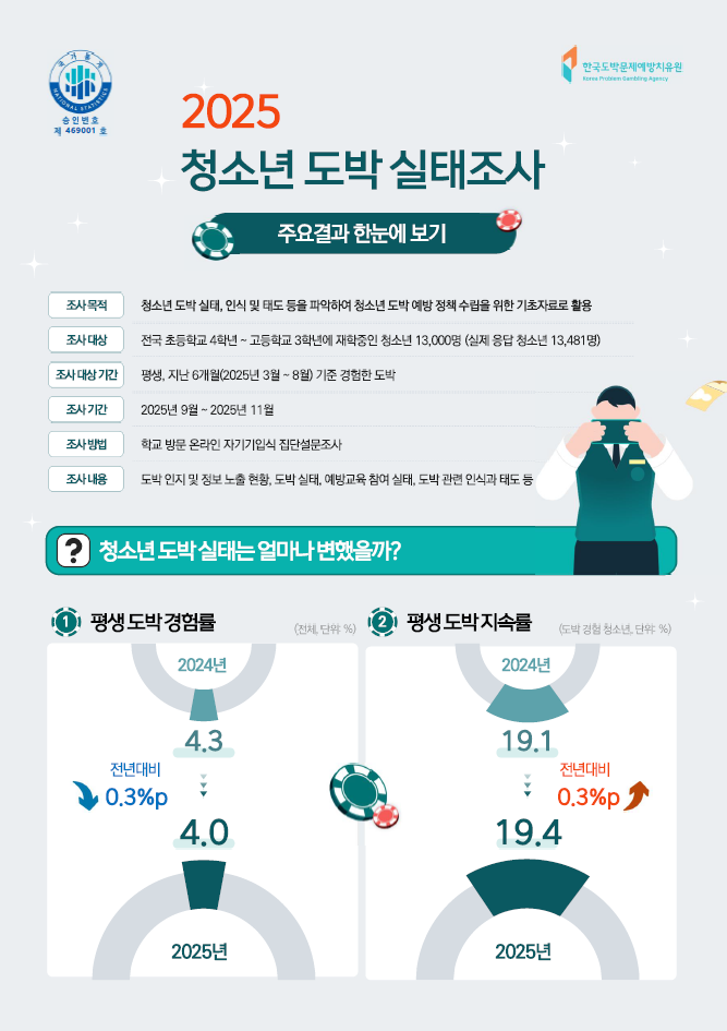 | ▲「2025년 청소년 도박 실태조사」인포그래픽(한국도박문제예방치유원) |