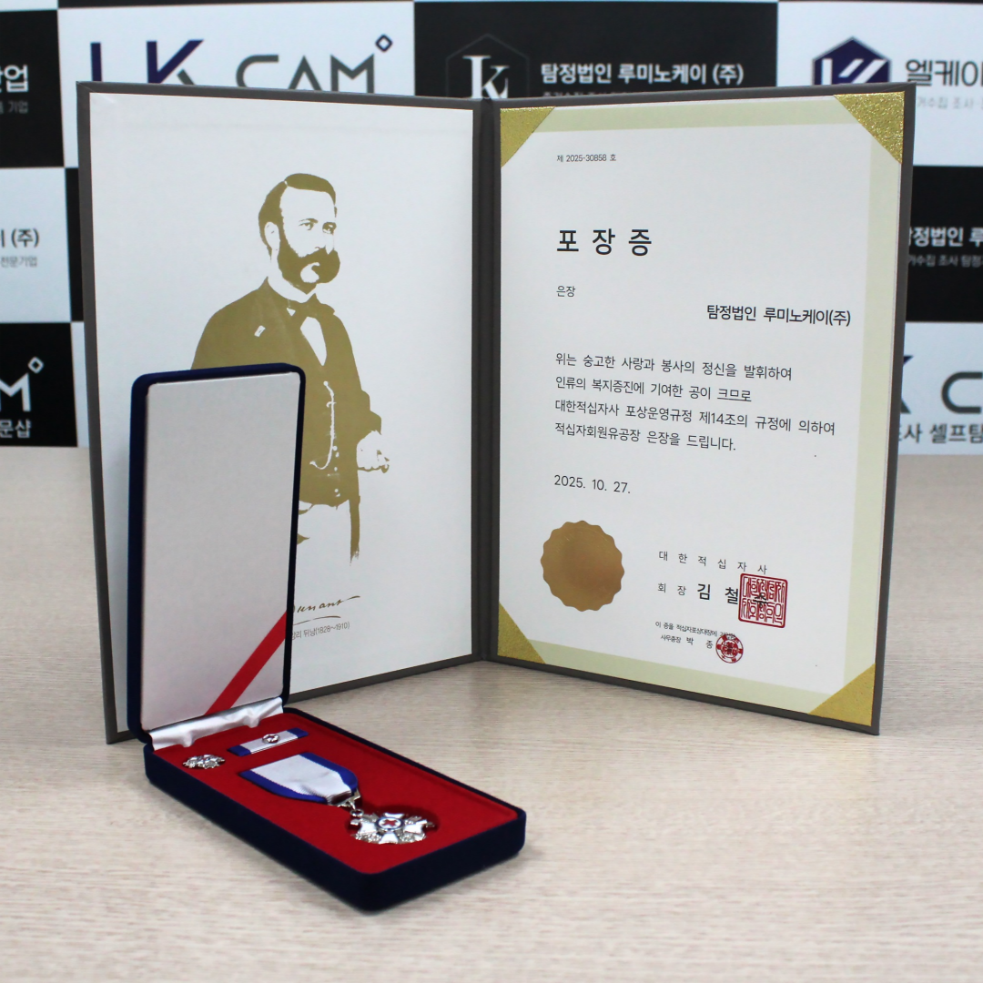 탐정법인 루미노케이(주)는 2025년 12월 3일, 대한적십자사 대구광역시지사가 주관한 ‘2026 Red Donors Day’ 행사에서 김재환 대표가 대한적십자사 적십자회원유공장 은장을 공식 수훈했다고 밝혔다.