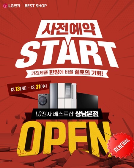 프리미엄 가전매장 LG전자 베스트샵 상남본점이 리뉴얼 오픈 기념 행사를 앞두고 12월 13일부터 12월 31일까지 사전 예약에 돌입한다.