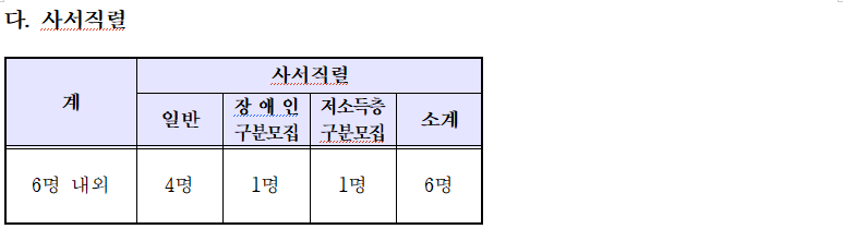 올해는 사서직 선발 인원이 3명에서 6명으로 늘어난 점이 변수다. 경쟁률 자체는 다소 낮아질 수 있지만, 지원자 수가 유지되면 여전히 높은 경쟁이 이어질 가능성이 있다.