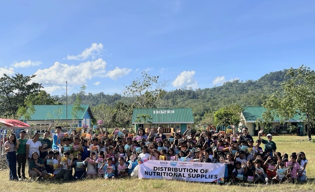 | ▲사진: 필리핀 망얀족 학생 대상 영양 물품 배분 사진 |