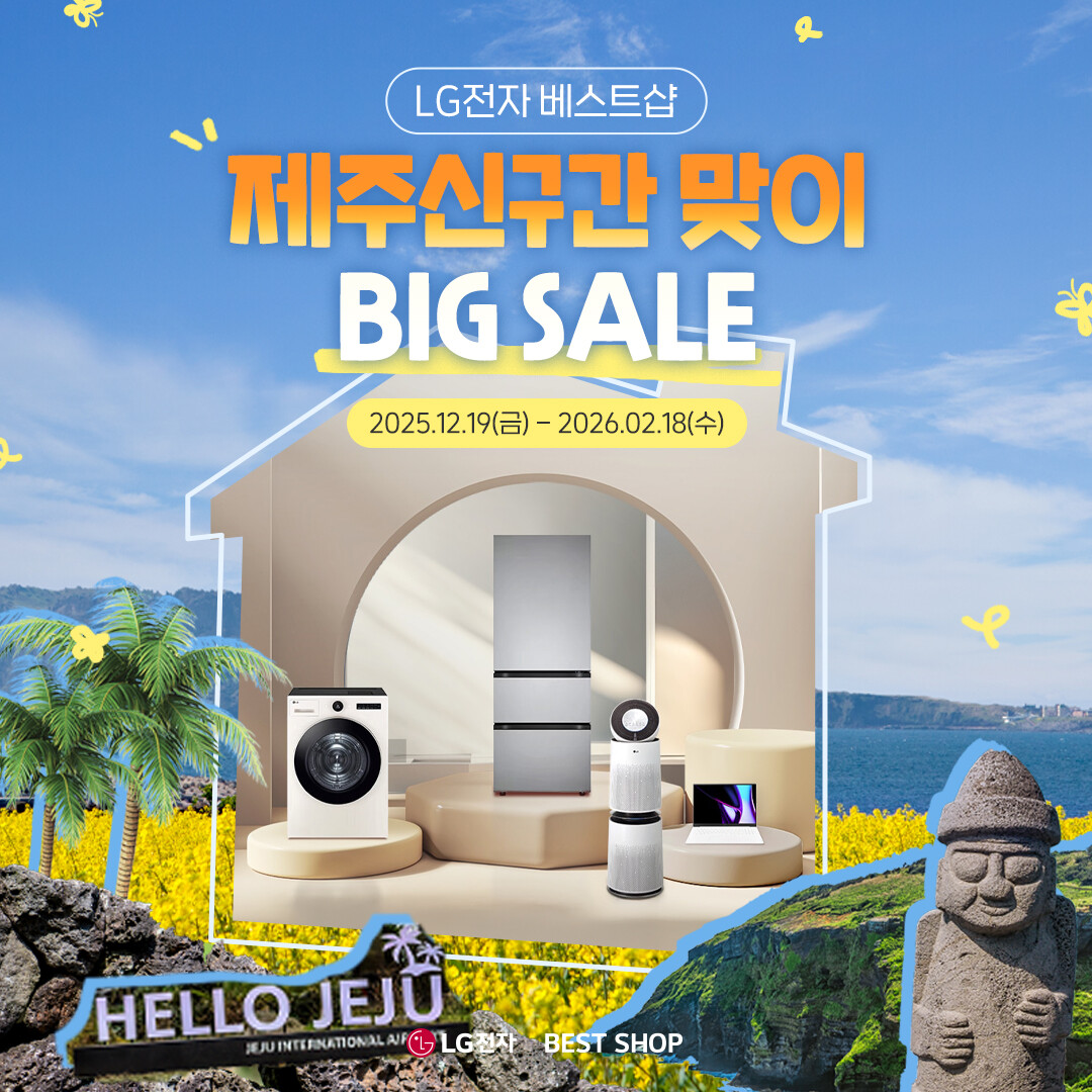 LG전자 베스트샵 제주본점·이도본점·서귀포점은 제주 지역 고객을 대상으로 오는 2025년 12월 19일부터 2026년 2월 18일까지 ‘제주신구간 특별 세일 행사’를 진행한다고 밝혔다. 이번 행사는 제주 고유의 이사 풍습인 ‘신구간’ 시기에 맞춰 기획된 프로모션으로, 혼수·이사·입주 고객을 비롯해 공무원, 군인, 보훈대상자 등 다양한 고객층이 폭넓은 혜택을 받을 수 있도록 구성됐다.
