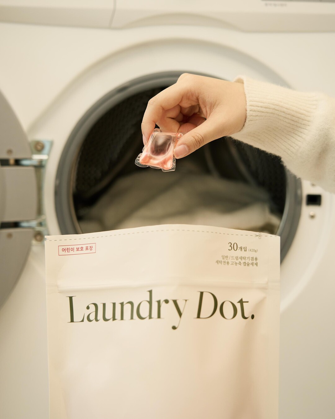 런드리닷은 ‘세탁의 마침표. 세탁의 끝.’이라는 브랜드 메시지를 내세운 프리미엄 캡슐세제 브랜드다. 수용성 PVA 필름 기술을 적용해 세탁세제와 섬유유연제의 고농축 액상 성분을 하나의 캡슐에 담아낸 것이 특징이다. 액상 포뮬러의 연구, 배합, 제조 전 과정은 국내에서 진행되며, 캡슐 외피는 물에 완전히 용해되는 100% 생분해 소재로 제작돼 미세플라스틱이 발생하지 않는 친환경 세탁 솔루션으로 평가받고 있다.