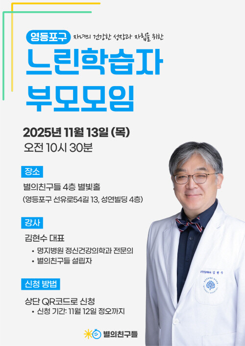 한편, 이번 부모 교육은 느린학습자 자녀를 둔 부모라면 누구나 참여할 수 있으며, 참가 신청은 별의친구들 블로그에 게시된 구글폼을 통해 진행할 수 있다.