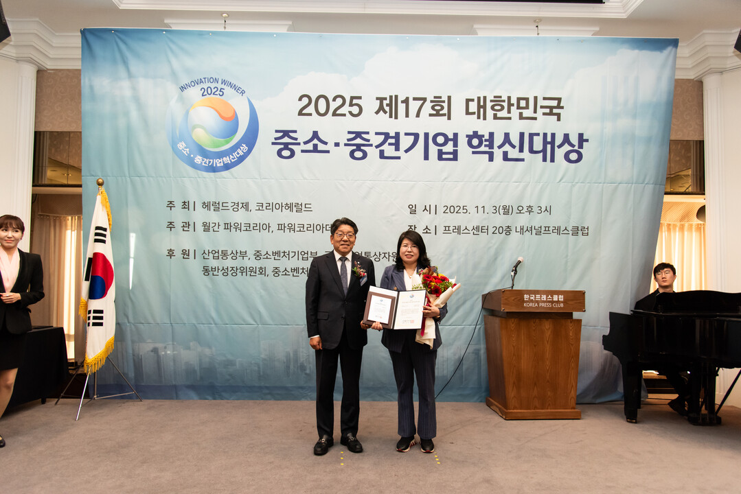 ‘대한민국 중소‧중견기업 혁신대상’은 헤럴드경제, 코리아헤럴드가 주최하고 월간파워코리아(발행인 백종원)가 주관하는 시상식으로 헤럴드 미디어 그룹이 차세대 성장 동력의 원천이자 선진한국 창조의 주역이 될 중소‧중견기업을 발굴, 격려하기 위해 제정됐다.