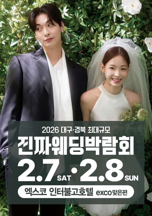 이런 흐름 속에서 2026 대구·경북 최대 규모 진짜웨딩박람회가 2월 7일(토)부터 진행되어 8일(일)까지, 엑스코인터불고호텔에서 열린다.