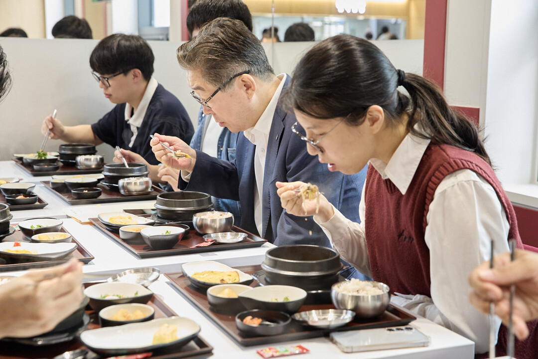 지난 9월 30일 오전 8시 40분, 김동원 총장은 고려대 학생회관 학생식당을 찾아 학생들과 함께 아침 식사를 하며 소통의 시간을 가졌다. 취임 이후 김 총장은 매 학기 ‘천원의 아침밥’ 시작일마다 직접 식당을 찾아 학생들과 식사를 함께하며 격려를 이어오고 있다.