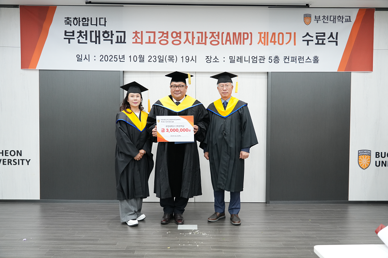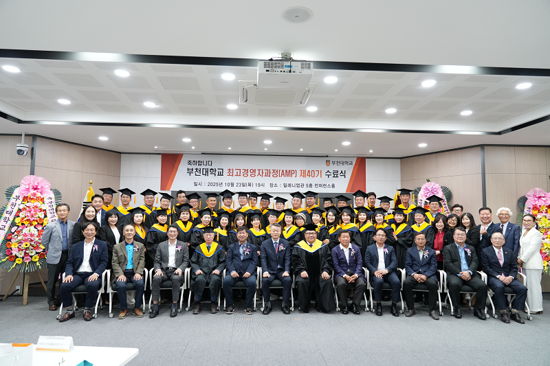 부천대학교(총장 한정석)은 2025년 10월 23일(목) 오후 7시, 부천대학교 밀레니엄관 5층 컨퍼런스홀에서 ‘제40기 최고경영자과정(Advanced Management Program, AMP)’ 수료식을 성황리에 개최했다.