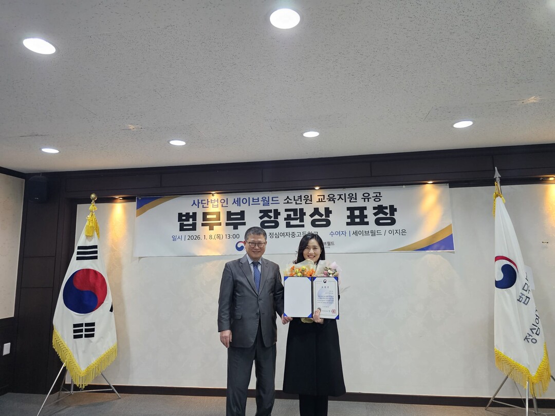 법무부 산하 사단법인 세이브월드 교사 이지은씨가 지난 8일 소년원 교육지원 교사로 활동하며, 소년원생들의 기초학력 보장과 학업 능력을 향상 시킨 공을 인정받아 법무부 장관 표창을 받았다.
