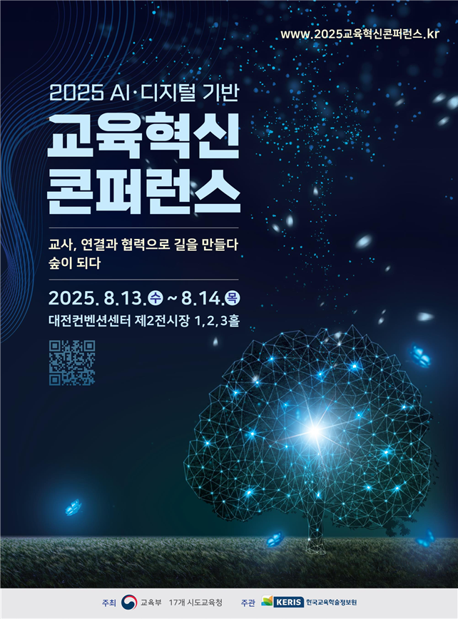 교육부와 한국교육학술정보원은 8월 13일부터 14일까지 양일간 대전컨벤션센터에서 ‘2025년 인공지능(AI)·디지털 기반 교육혁신 콘퍼런스’를 개최한다.