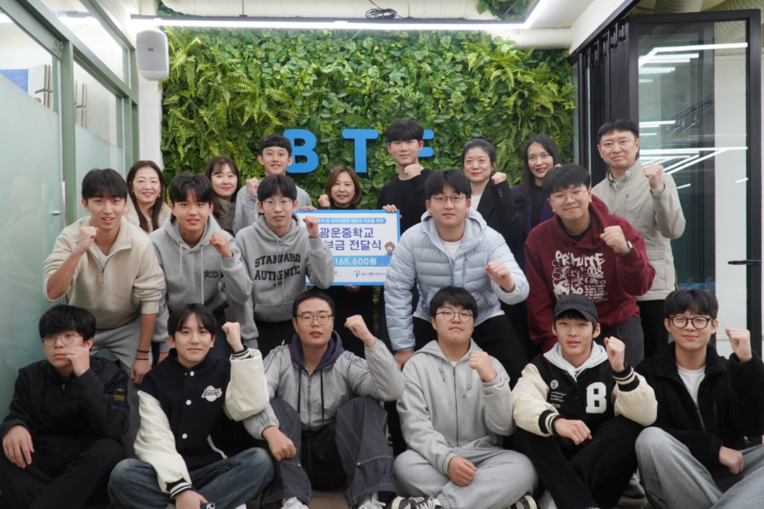 광운중학교는 지난 2월 12일 BTF푸른나무재단에서 기부금 전달식을 열고, 학교폭력 피해 청소년의 치유·회복과 예방 활동을 위해 학생들이 모은 수익금을 전달했다고 밝혔다. 이날 전달식에는 광운중학교 학생회와 학부모회 대표, 교직원 대표가 함께 참석해 의미를 더했다.