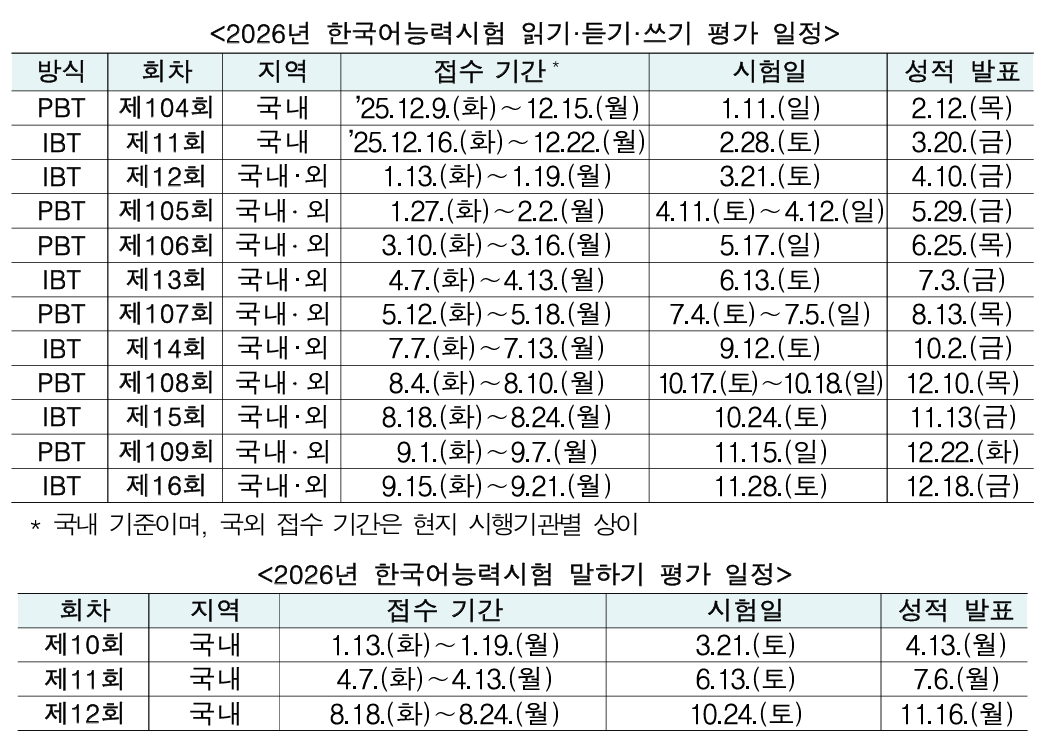 2026년 한국어능력시험 시행계획 발표...“IBT 6회·말하기 3회로 확대, 부정행위 제재 강화”