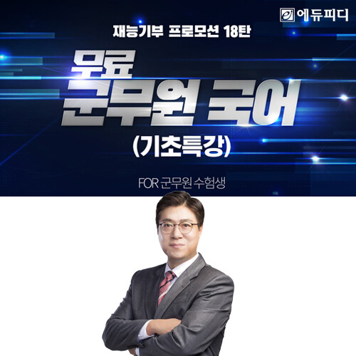 한편 ‘군무원 국어 기초특강’은 에듀피디 이벤트 탭 ‘재능기부 프로모션 18탄’ 페이지에서 신청할 수 있으며, PC와 모바일을 통해 배수 제한 없이 ‘7일 동안’ 무료로 수강할 수 있다.